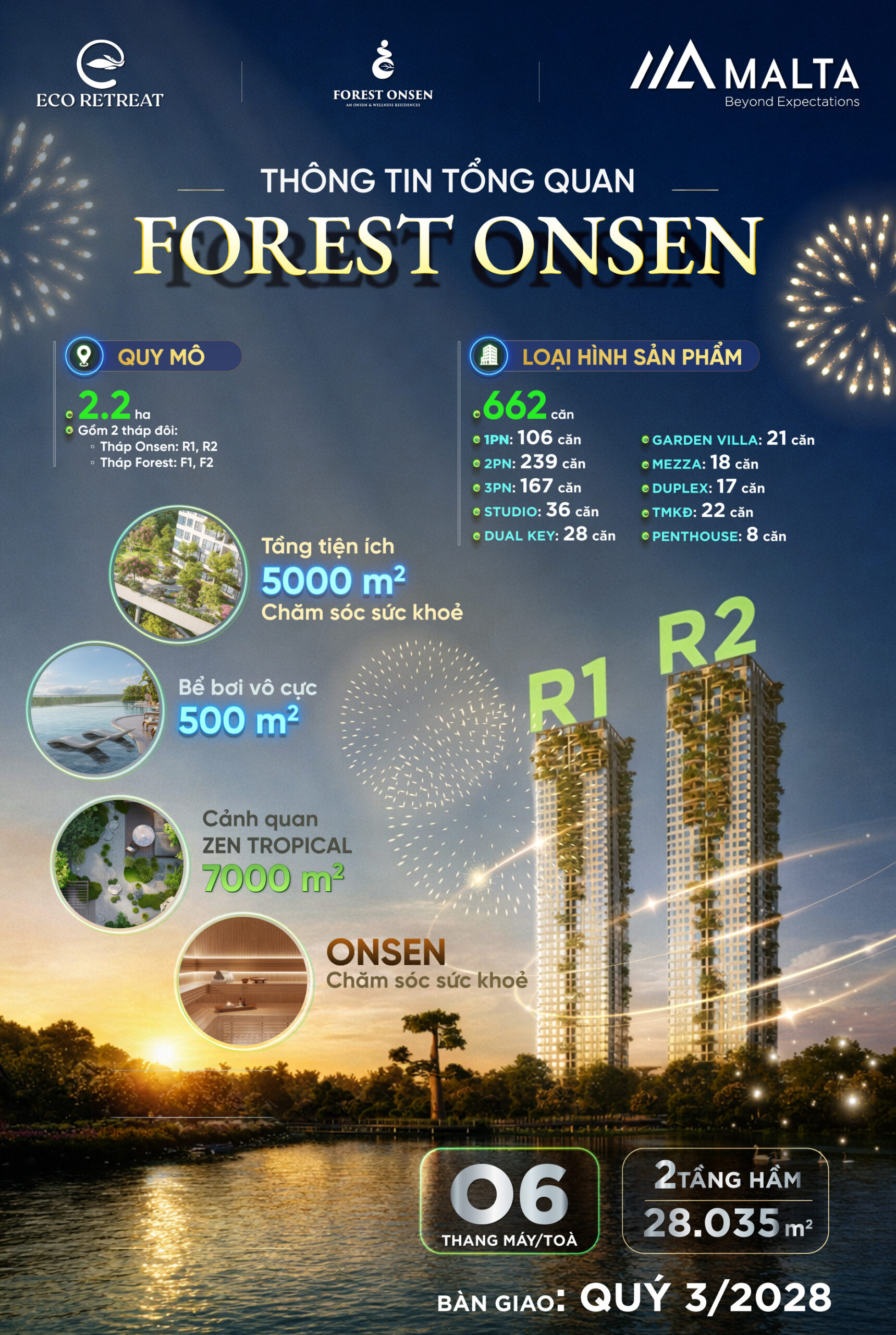 Quy mô dự án gồm 4 tòa tháp được quy hoạch bài bản, bao gồm R1 – R2 là tháp đôi Onsen và F1 – F2 là tháp đôi Forest. Tổng số lượng căn hộ được giới hạn chưa đến 1.200 căn, tạo nên sự khan hiếm và nâng cao giá trị sở hữu trong dài hạn.