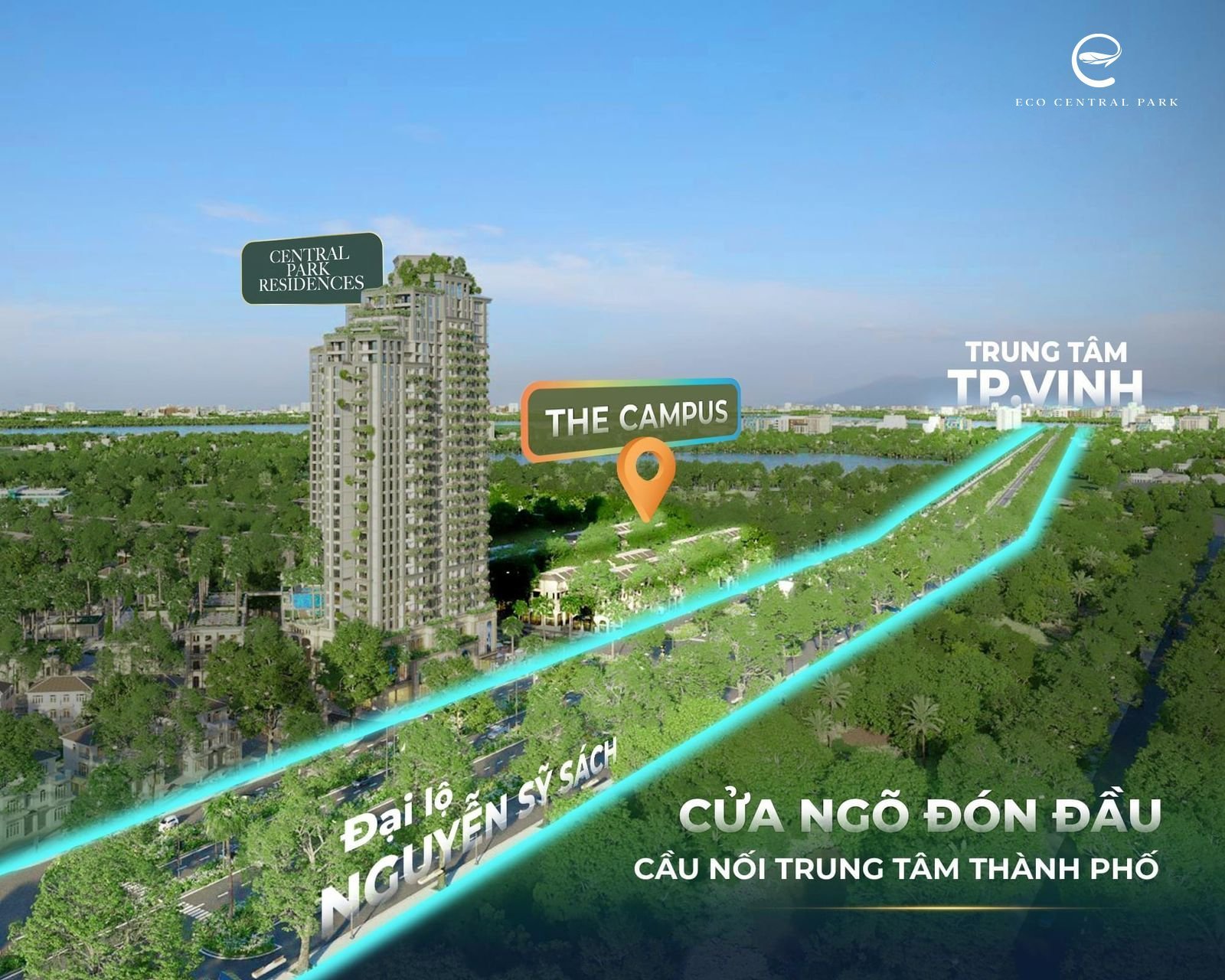 Được mệnh danh là nơi “mọi con đường” về nhà của cư dân Eco Central Park (rộng gần 200ha, tại phường Trường Vinh, tỉnh Nghệ An) đều đi qua, mọi ánh mắt của cư dân đều ngước nhìn, phân khu The Campus 2 tọa lạc tại cửa ngõ đón đầu mọi luồng di chuyển ra vào khu đô thị xanh lớn nhất Bắc Trung Bộ.