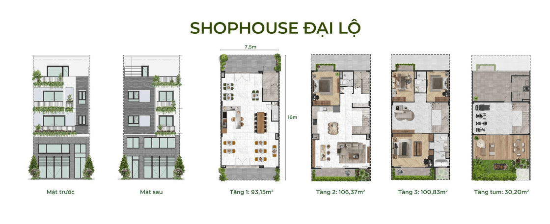 - Sản phẩm đa dạng: Shophouse, nhà phố, biệt thự – đáp ứng đa dạng nhu cầu an cư và đầu tư.